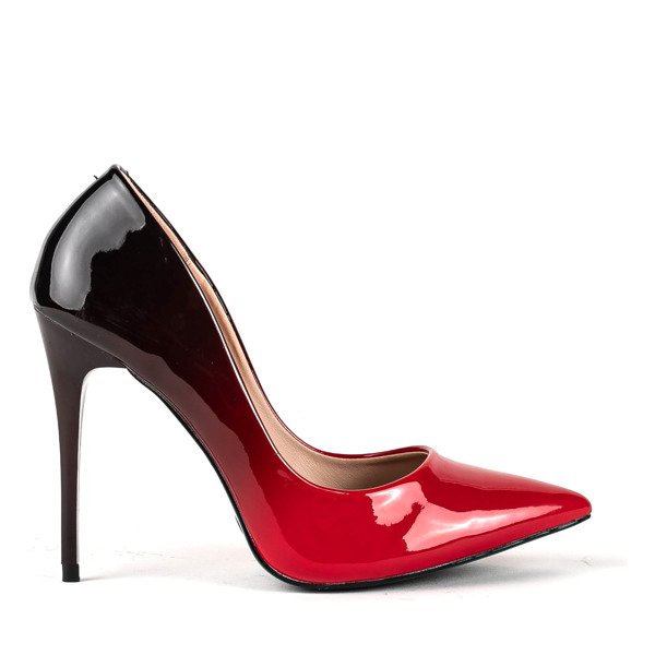 - Дивовижні насоси на високому каблуці. Вироблена з лакованої шкіри. Модель має ефект червоного - чорного омбре. Взуття із загостреним носком. ПРИМІТКА: модель, призначена для вузької конструкції ніг.