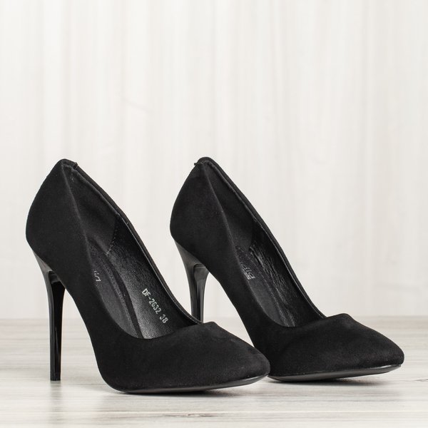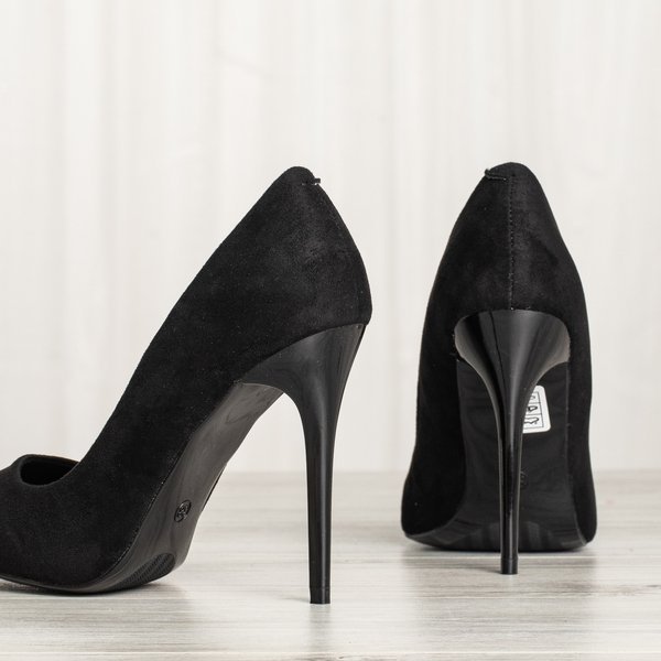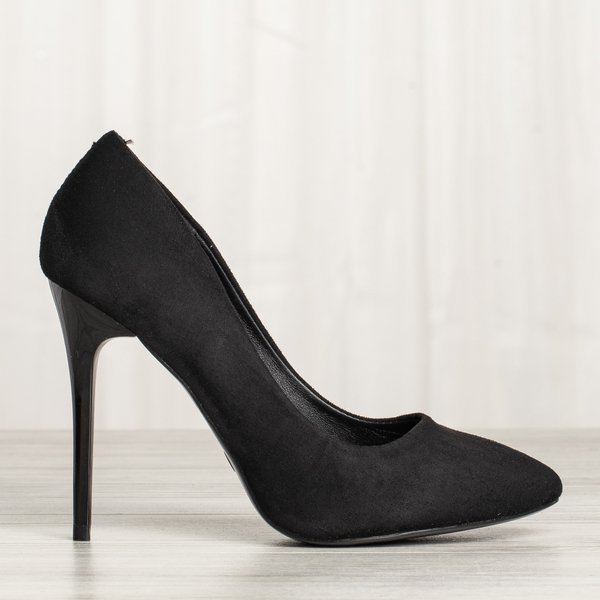 • Елегантні туфлі-човники на шпильці з еко-замші чорного кольору. Устілка покрита екологічною шкірою. Представлене жіноче взуття стане чудовим доповненням до елегантного стилю.