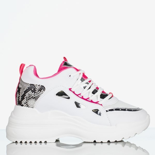 • Модне жіноче спортивне взуття на масивній підошві з додатковою прихованою танкеткою. Кросівки виготовлені з екологічної шкіри в поєднанні з сіткою. Модель оздоблена тисненням та металевими вставками.
