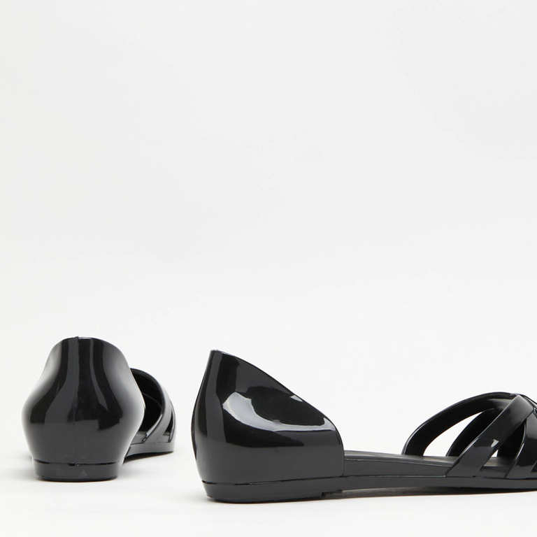 - Жіночі чорні балерини з гумового матеріалу. Декоративні вирізи на носі. Шкіряна устілка - еко. Ідеальне взуття для літніх днів.