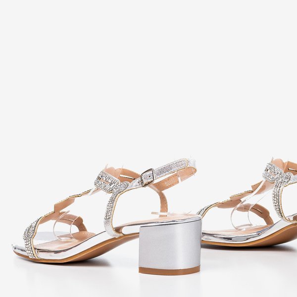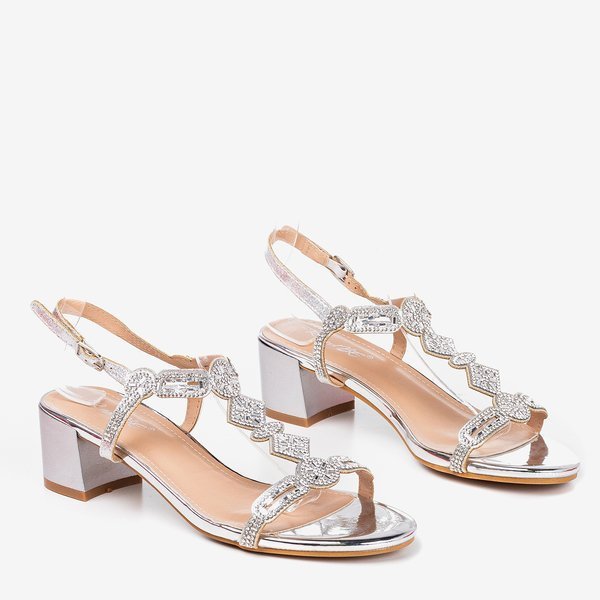 Срібні босоніжки на низькій стійці з фіанітами Doremia - Взуття