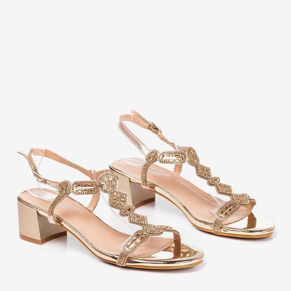 Золоті сандалі на низькому стовпі з фіанітом Doremia - Взуття