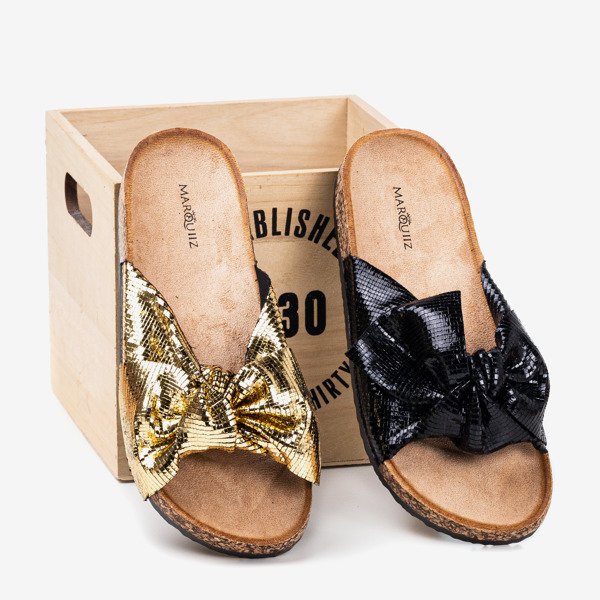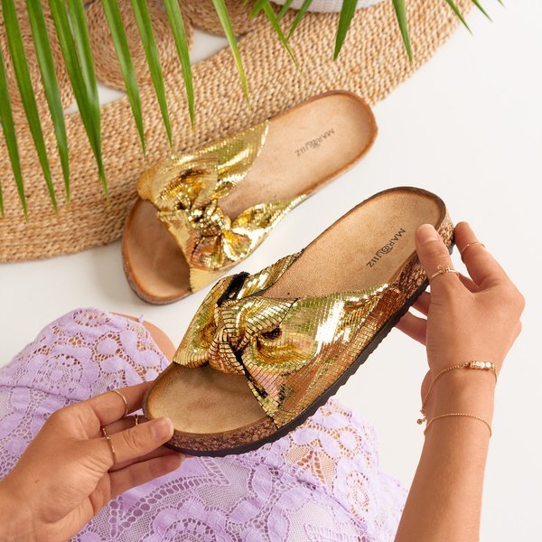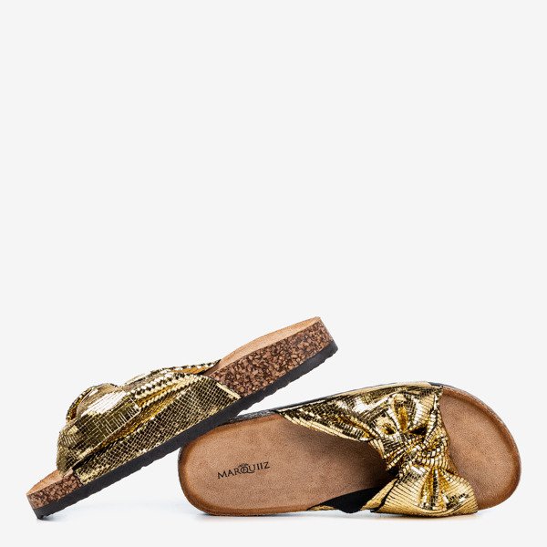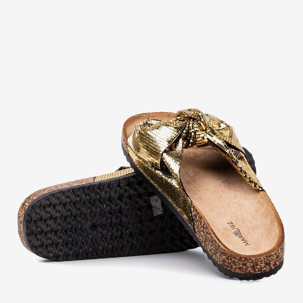 Золоті жіночі тапочки з бантом Isydora - Взуття