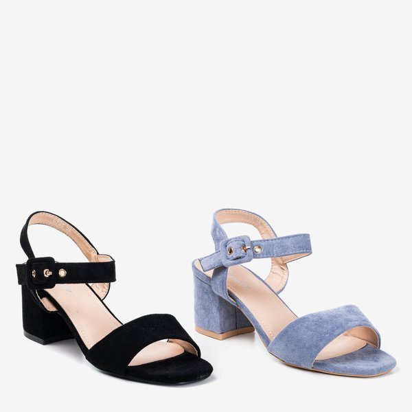 - Жіночі босоніжки на штангу з м'якої екологічної замші, та устілки з екологічної шкіри. Модель у світло-синьому кольорі. Регульований ремінь навколо щиколотки, закріплений застібкою