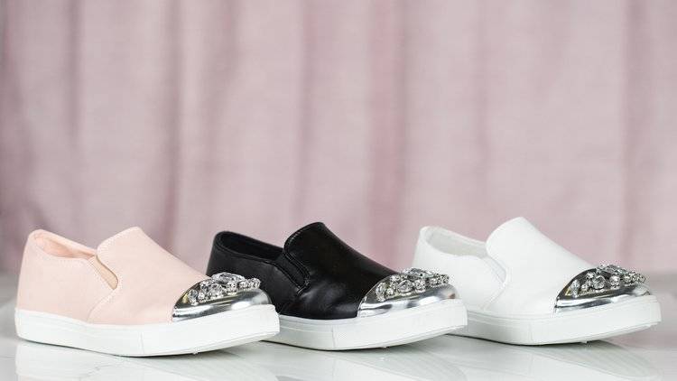 - Рожеві сліпи на екошкірі на кросівках. Металевий ніс із фіанітом. Тканина, покрита носком. Міцно зроблений і дуже зручний завдяки м’якій гумовій підошві. Примітка: виріб має розбитий матеріал.