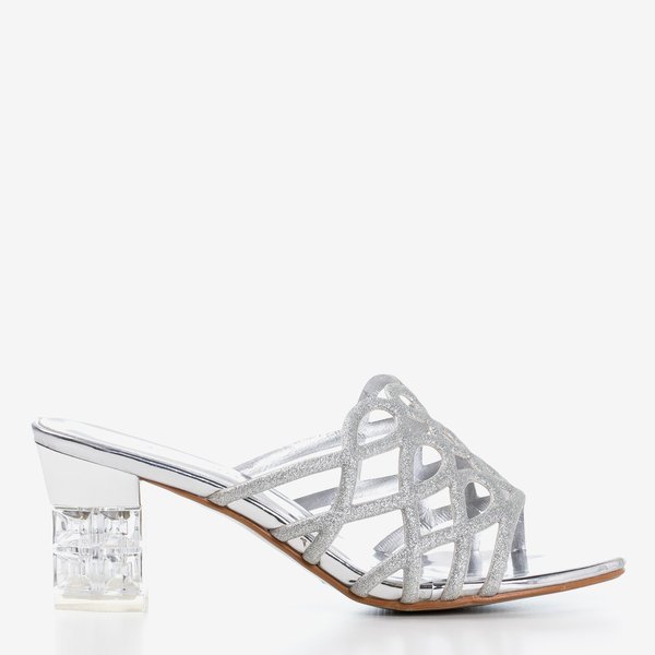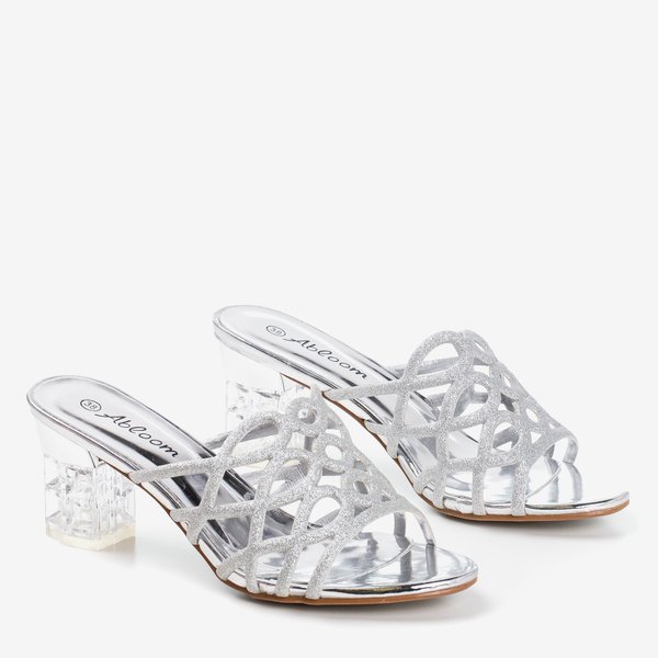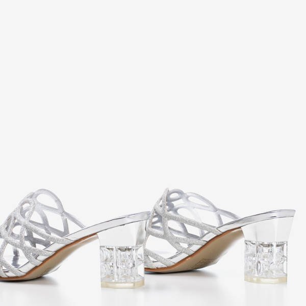 Срібні тапочки на вищій прозорій стійці Попелюшки - Взуття
