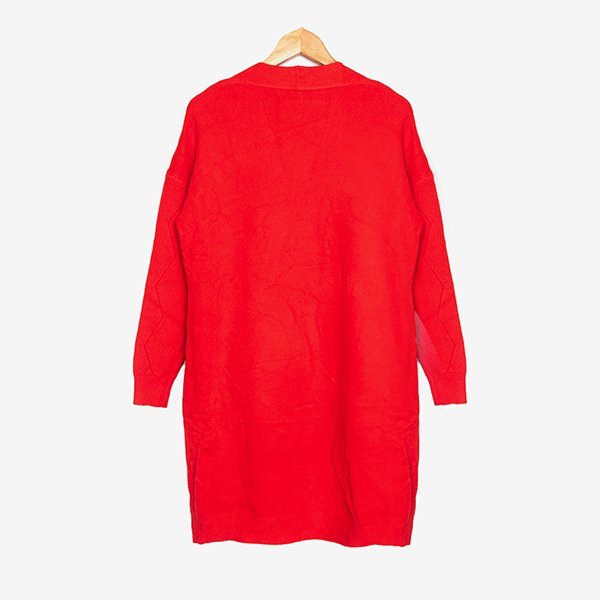 - Жіночий кардиган з червоним візерунком, без застібки. Модель з довгими рукавами та кишенями. Чудове доповнення до повсякденних стилізацій. ПРИМІТКА: Точність вимірювання (+/-) 1 см.