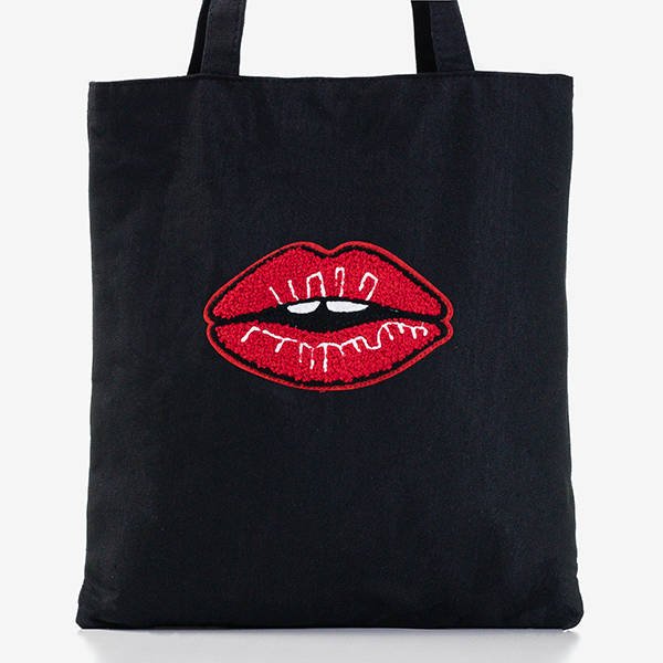 Жіноча чорна сумка з декоративною нашивкою - Сумочки