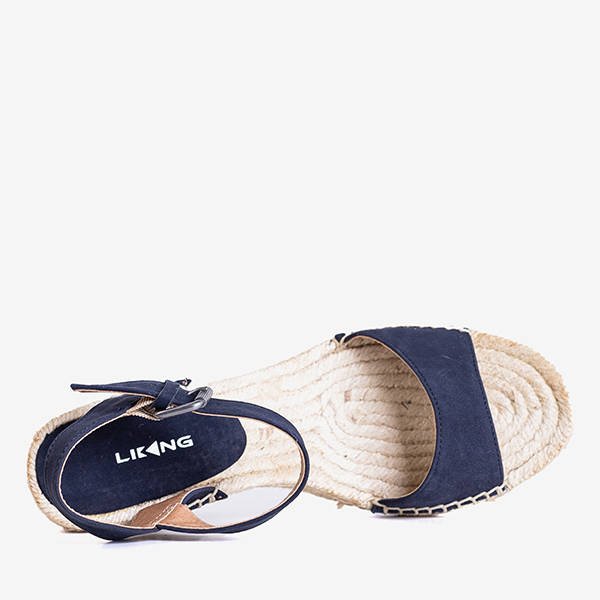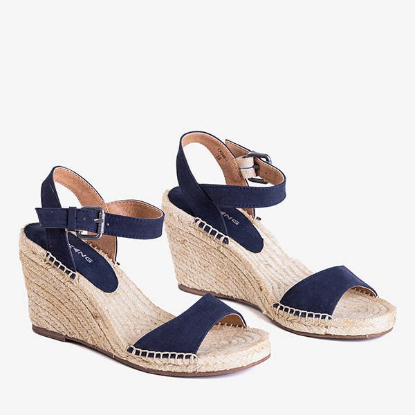 Темно-сині жіночі босоніжки на танкетці Bieruma