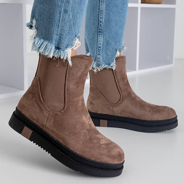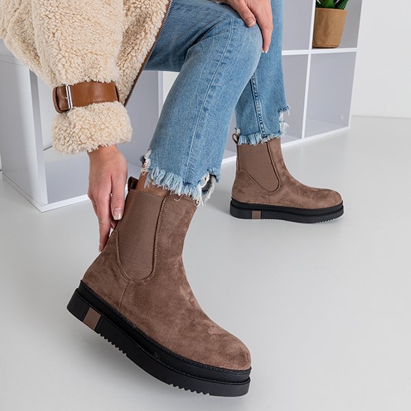 - Стильні жіночі черевики на платформі, виготовлені з еко-замшевої шкіри. Всередині взуття, утеплене ніжним хутром. Ковзання - вони не мають кріплення, вони пристосуються до вашої ноги завдяки гумці, яка додатково полегшує надягання