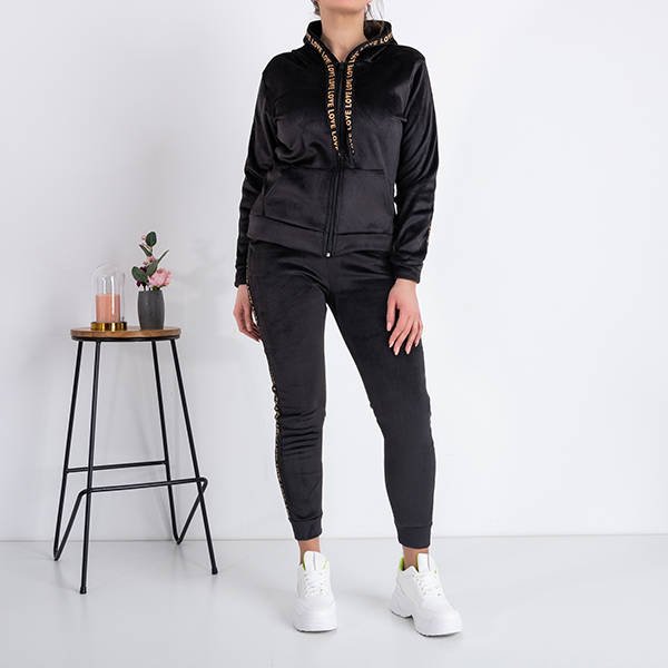 Чорний утеплений жіночий комплект спортивних костюмів у смужку - Одяг