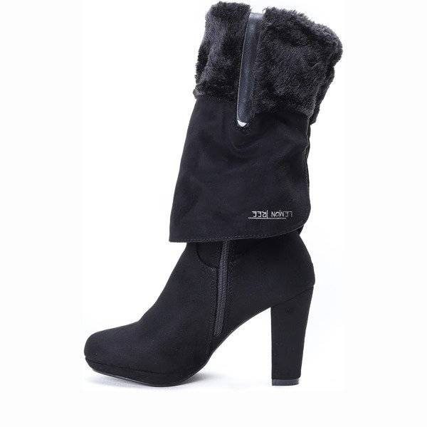 • Сенсаційні черевики на високому стовпі з екологічної шкіри замші. Усередині вони мають товстий утеплювач у вигляді хутра. Модель застібається на блискавку. Ідеально підходить для морозів! Примітка: виріб має бруд на матеріалі.
