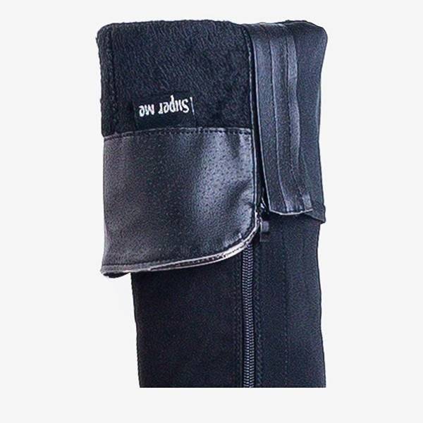 • Сенсаційні жіночі черевики над коліном. Модель виконана з поєднання екологічної шкіри замші та тканини. Каблук виготовлений з лакованої шкіри. Примітка: виріб має розбитий матеріал.