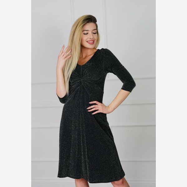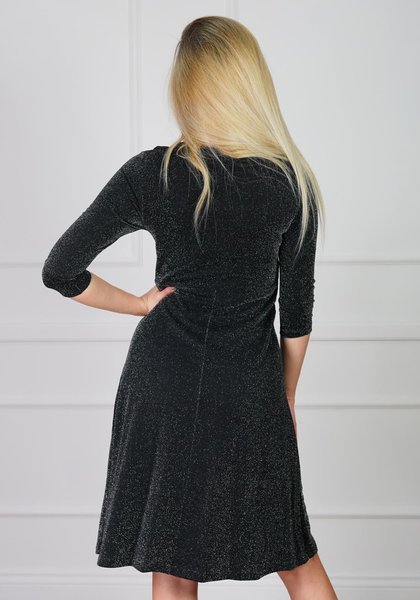 - Чорна еластична сукня зі сріблястим покриттям. Рукави довжини 3/4. Модель без застібок, V-подібне декольте. Підкладка знизу. В цій сукні відчуєш себе зіркою!