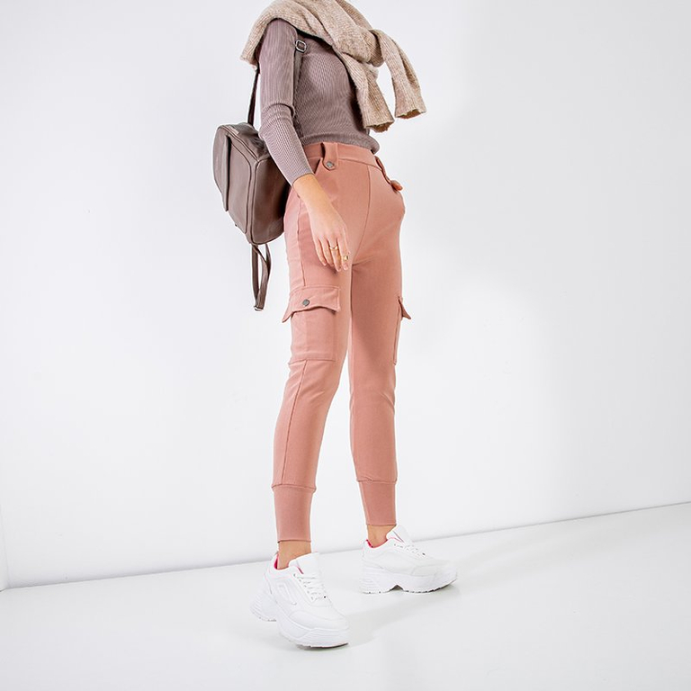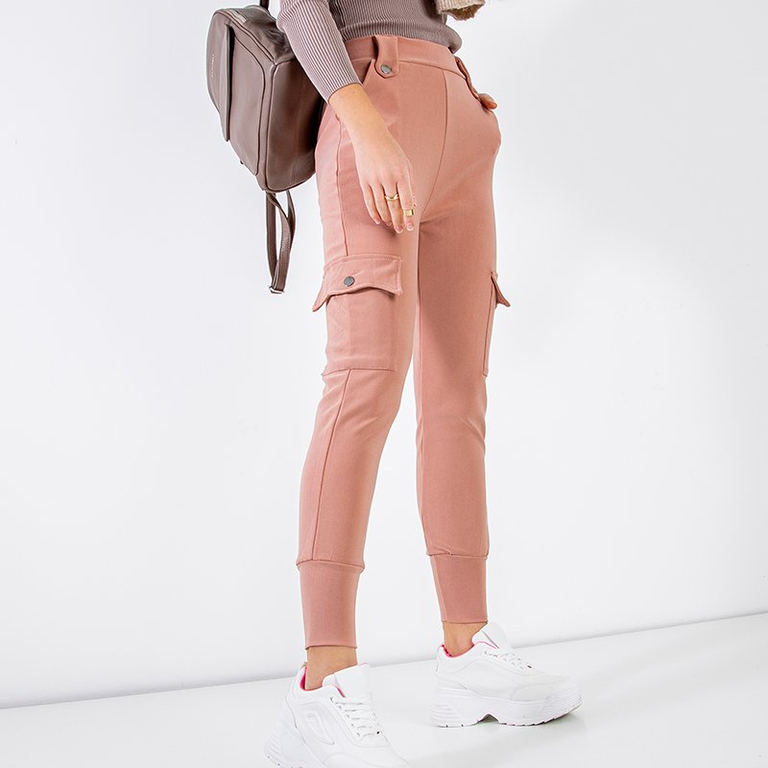 Світло-рожеві жіночі вантажні штани з кишенями - Одяг