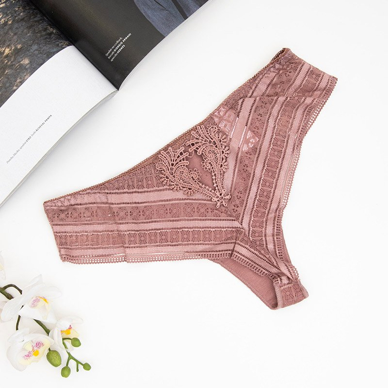 Темно-рожеві мереживні бразильські трусики - нижня білизна