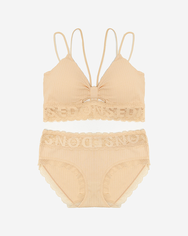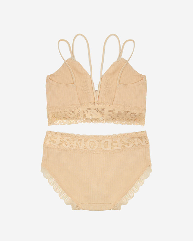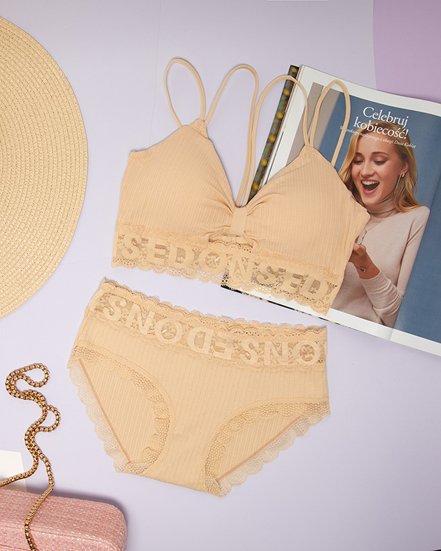 Бежевий жіночий комплект білизни з мереживом - Нижня білизна