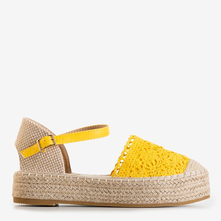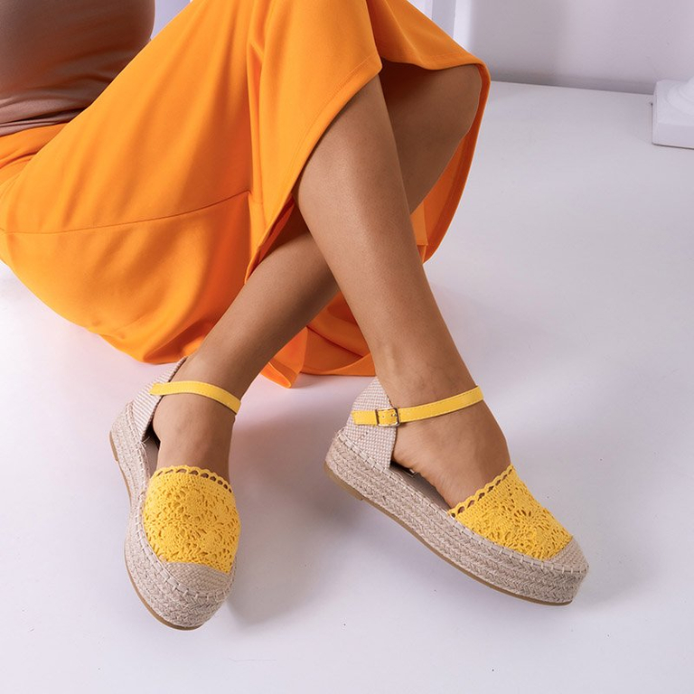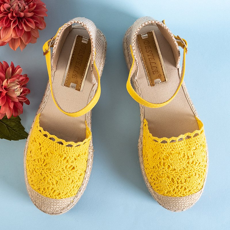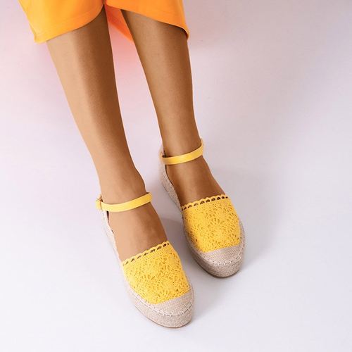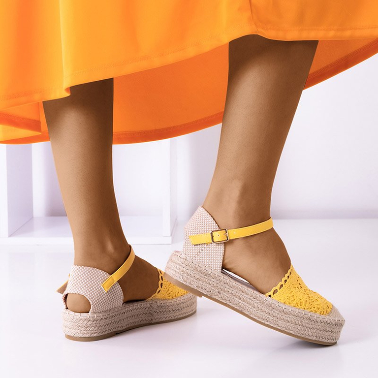- Легкі жіночі босоніжки типу еспадрильї на платформі. Виготовлені з тканої нитки та тканини, всередині тканинна устілка. Платформа прикрашена джутовою ниткою. Застібається на пряжку навколо щиколотки. Ідеальне літнє взуття!