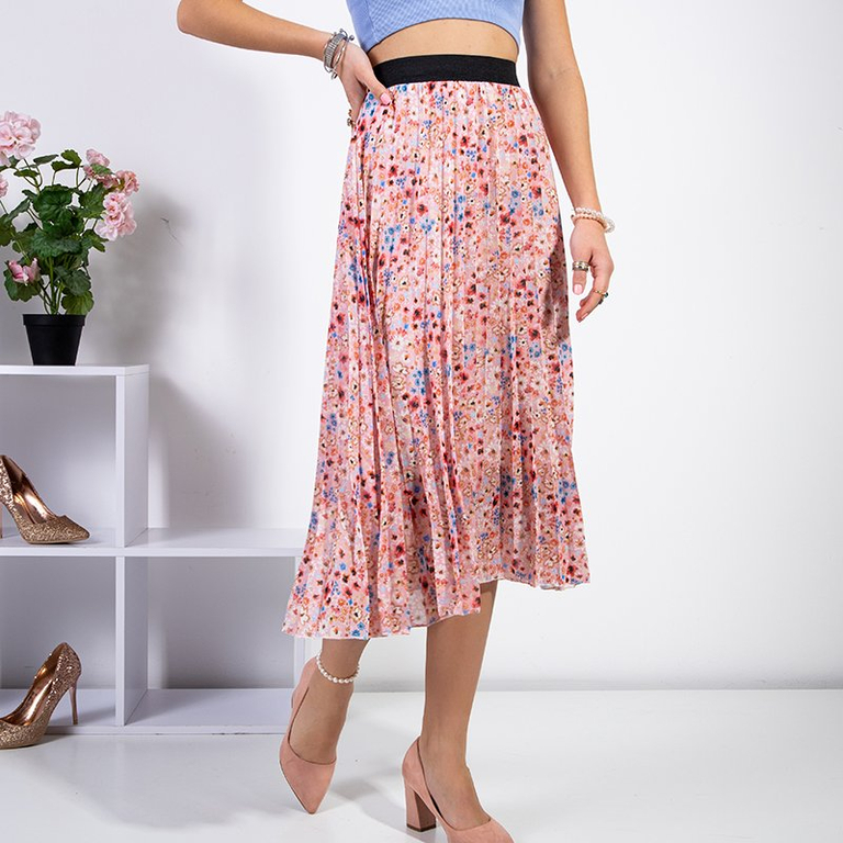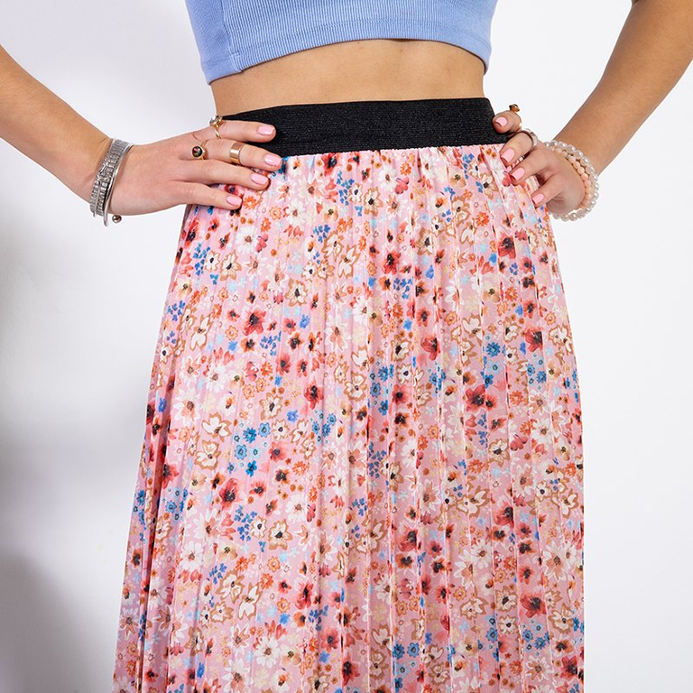 Рожева плісирована спідниця з квітковим принтом