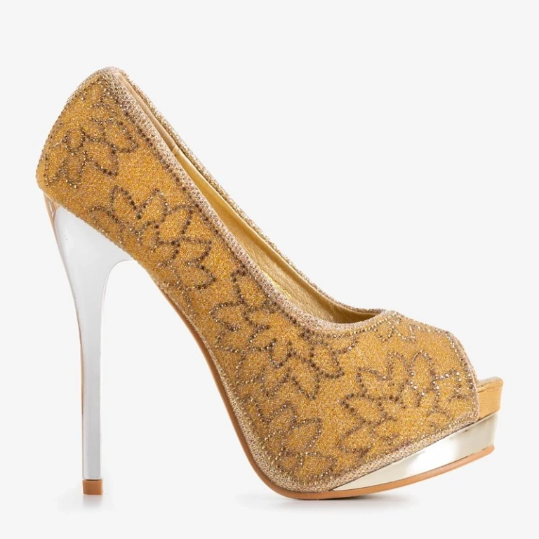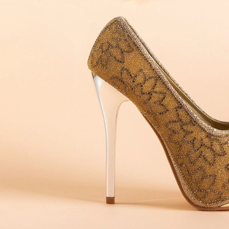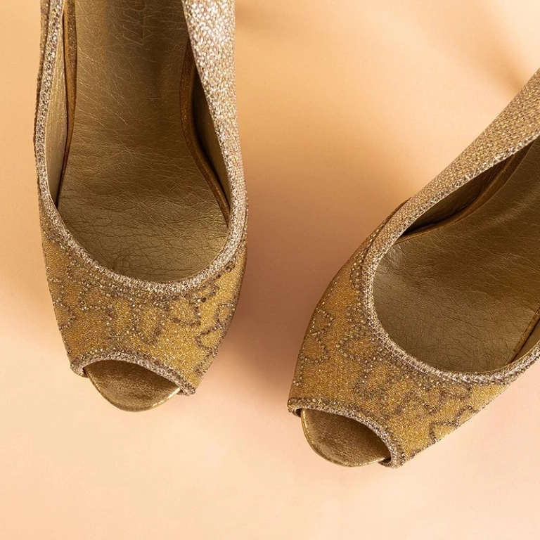 OUTLET Золоті жіночі парчані насоси з фіанітом Vida - Взуття