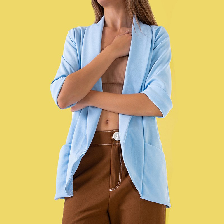 - Практична жіноча кофта у вигляді піджака. Виготовлена з поліефірного матеріалу. Модель без застібок, спереду дві кишені, рукава довжиною 3/4. Ідеально підходить для будь-якого образу!