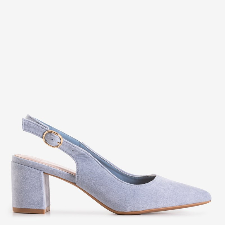- Класичні жіночі туфлі з відкритою п'ятою, на підборах. Виготовлені з еко-замші, устілка - з еко-шкіри. Застібаються на пряжку на рівні щиколотки. Загострений носок робить ноги візуально стрункішими. Ідеально підходить для створення стильних образів!
