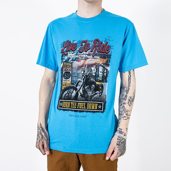 Яскраво-блакитна чоловіча бавовняна футболка з принтом