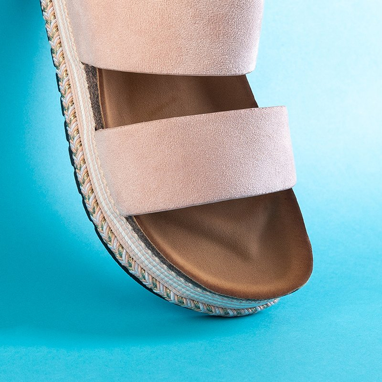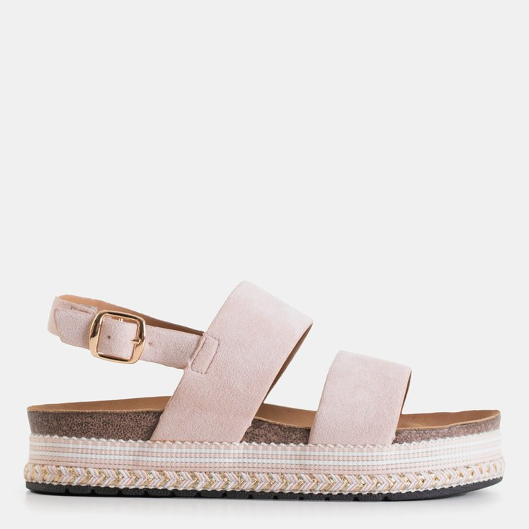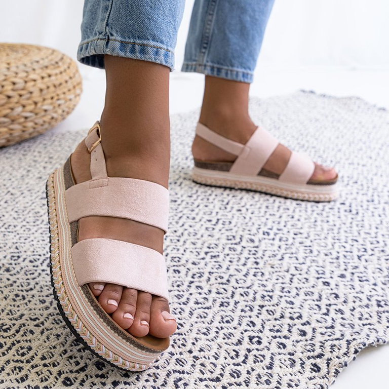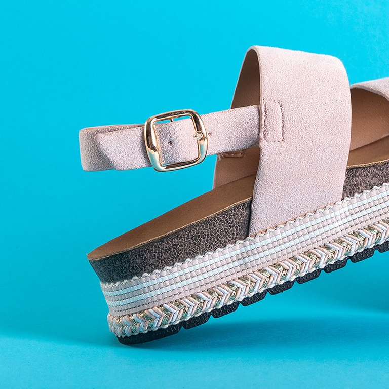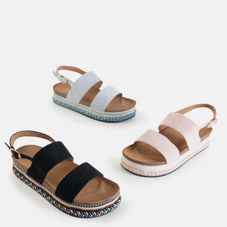 - Жіночі босоніжки на платформі, прикрашеній плетенням. Ремінці виготовлені з екологічної замші, устілка прошита екошкірою. Модель застібається на пряжку зовні. Ідеальне взуття для створення комфортних та стильних образів!