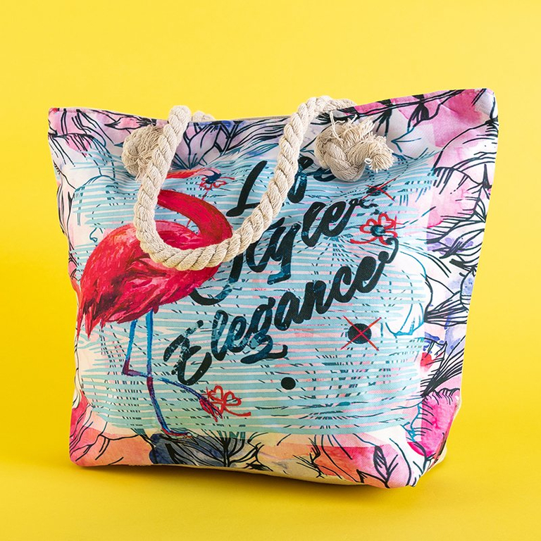 - Яскрава сумка з тканинного матеріалу, прикрашена візерунками та принтом у вигляді фламінго. Модель застібається на блискавку, всередині велике відділення, яке розділене перегородкою. Ідеально підходить для пляжу!