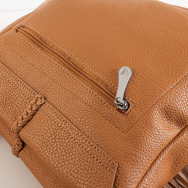 - Жіноча сумочка виконана з екошкіри. Виріб має кишеню на блискавці та відділення для телефону. Сумка застібається на блискавку, додатково оздоблена модною бахромою навколо та срібною пряжкою. Цікава модель, яка урізноманітнить будь-який образ!