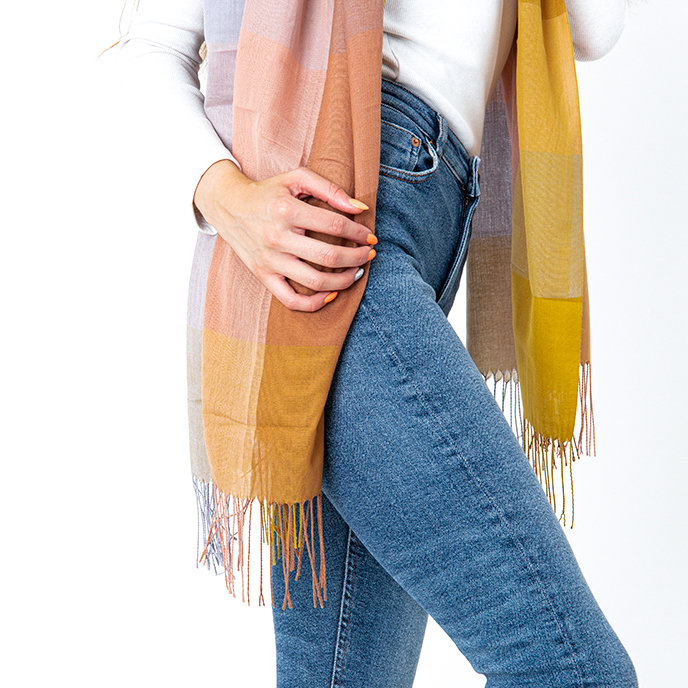 - Красивий жіночий шарф в клітинку - універсальна модель, яка поєднуватиметься з усіма осінніми образами.