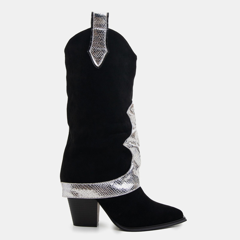 - Стильні козаки на підборах з декоративним верхом. Верх виготовлено з екологічної замші, устілка з тканини. Комфортні й водночас стильні чоботи!