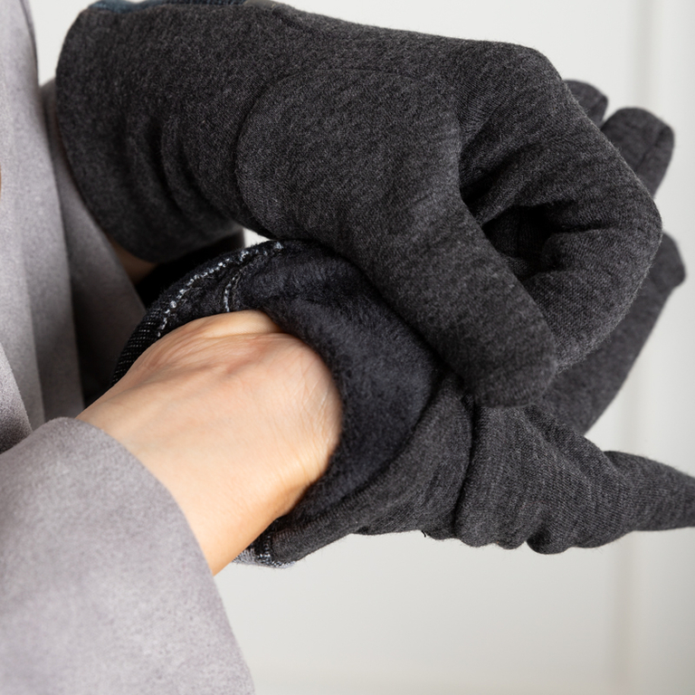 - Теплі жіночі рукавички з м'якої тканини. Всередині хутряна підкладка. Модель оздоблена вставкою в клітинку.