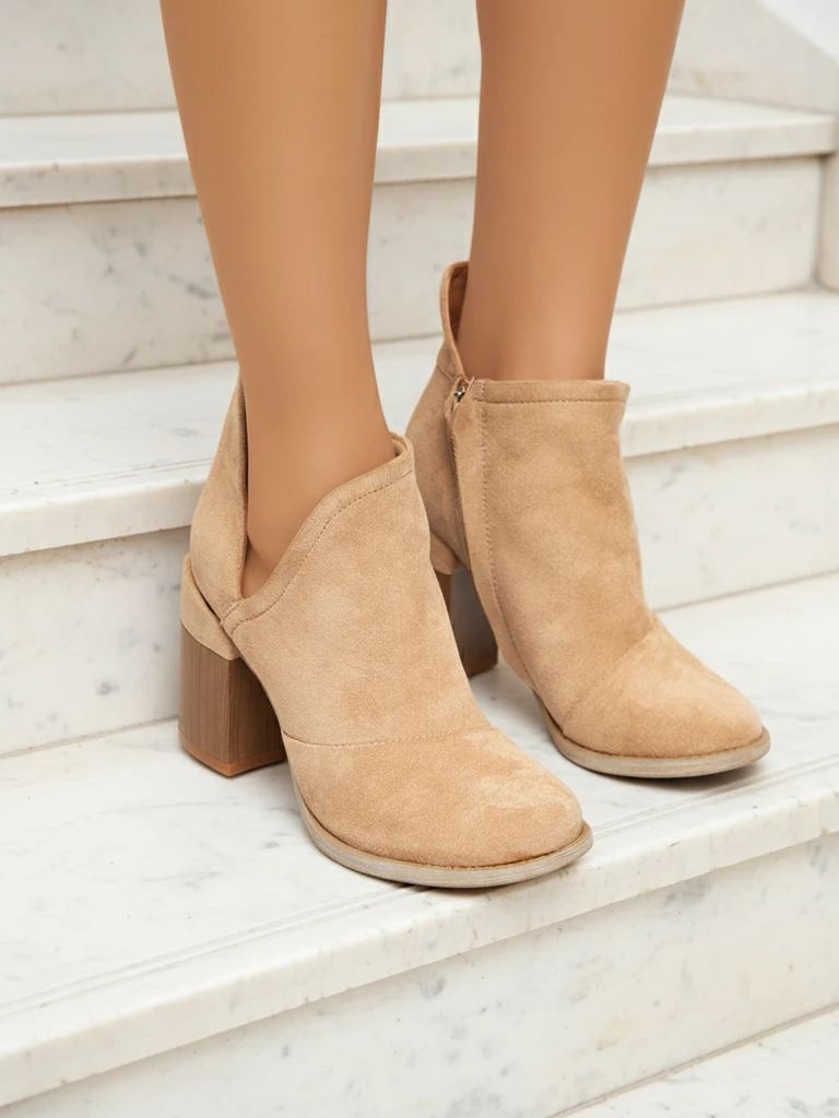- Фантастичні жіночі ботильйони на стійких підборах. Верх зроблений з екозамші та оздоблений декоративними вирізами, устілка з екологічної шкіри. Модель застібається на блискавку з внутрішньої сторони. Ідеальне осіннє взуття!
