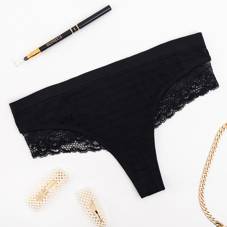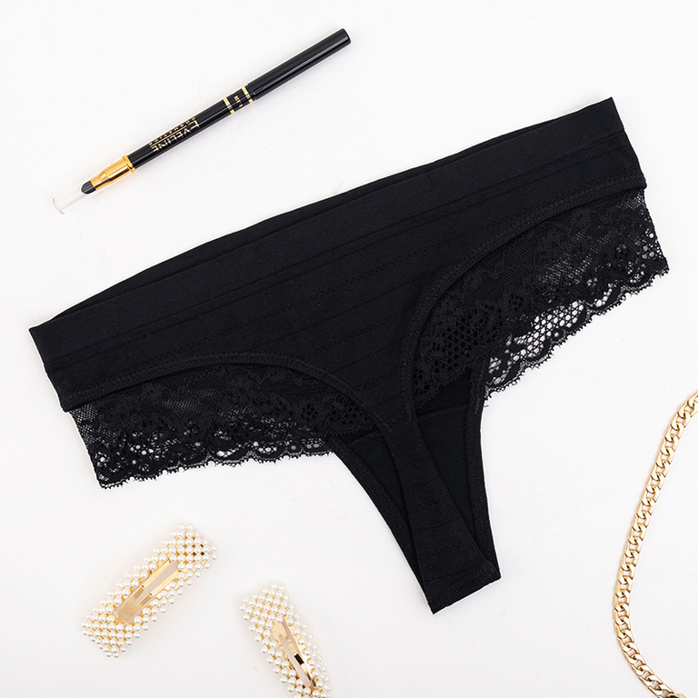 • Однотонні жіночі трусики - бразиліани, завершені мереживом з квітковим візерунком. Ефектна спідня білизна!