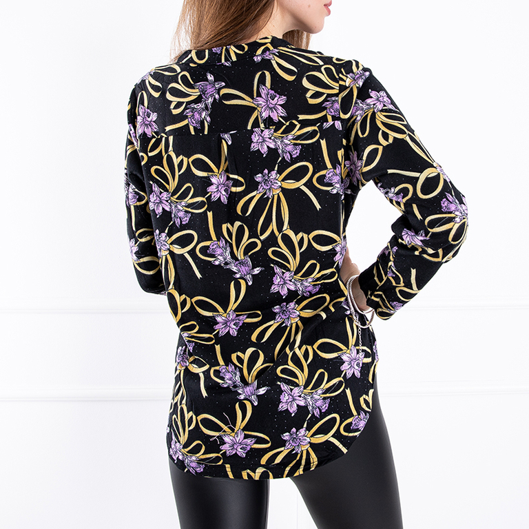 Чорна жіноча блузка з рослинним принтом