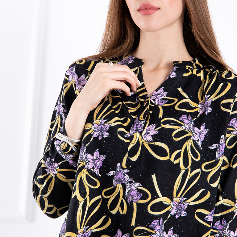 - Модна жіноча блузка. Виготовлена з м'якого матеріалу з рослинним принтом. Модель вільного крою, має виріз на ґудзиках. З нею Ви неодмінно створите елегантний та жіночний образ!