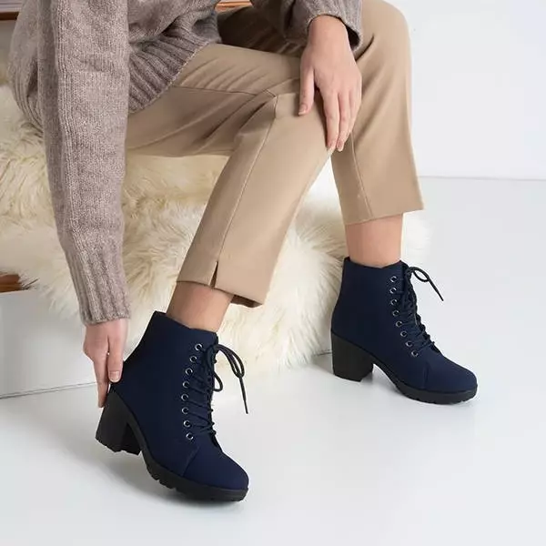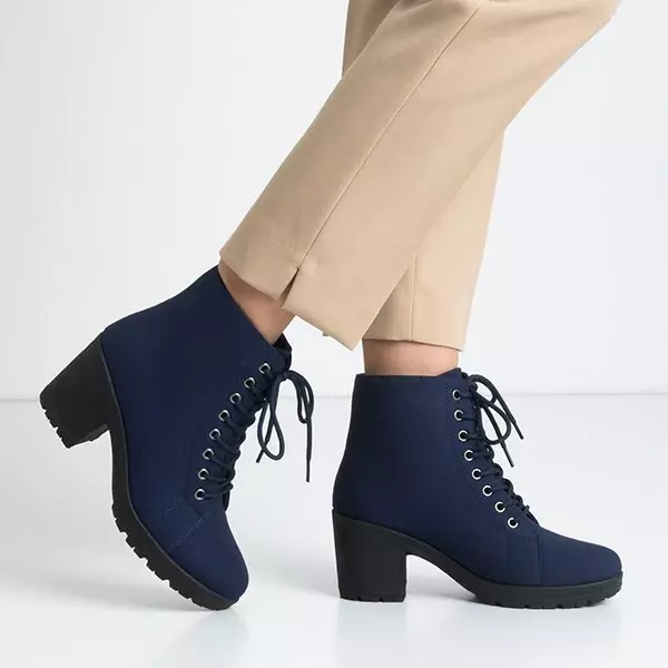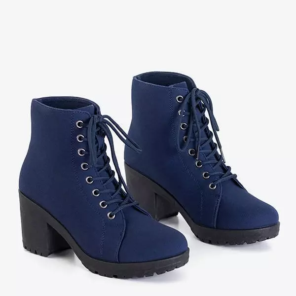 OUTLET Жіночі темно -сині чоботи на шнурівці на високих підборах Мінор - Взуття