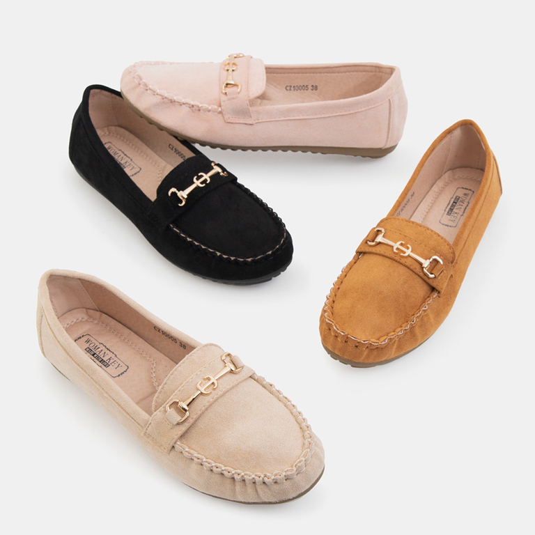 • Неперевершені жіночі мокасини з золотим оздобленням. Виконані з екологічної замші. М’яка устілка з екошкіри з подушками забезпечує комфорт. Ідеальна база для багатьох повсякденних образів!