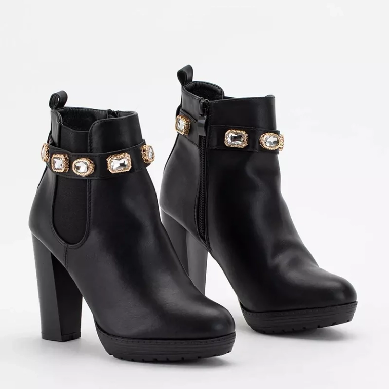 OUTLET Чорні жіночі ботильйони з кристалами Pricile - Взуття