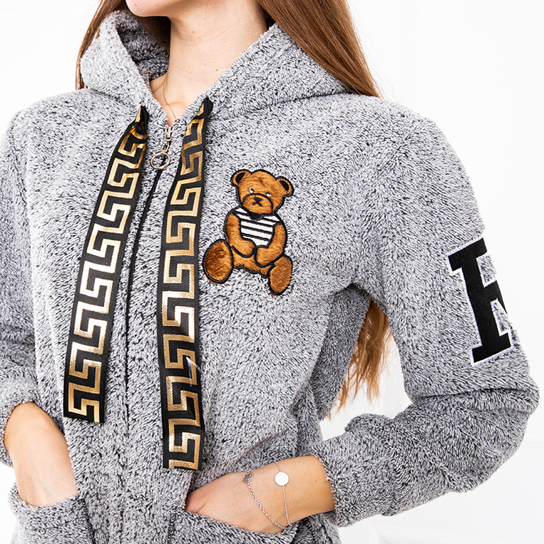 - Теплий, м'який жіночий светр на блискавці. Модель з капюшоном, 2 накладними кишенями. Оригінальності додають нашивки з плюшевим ведмедиком. Чудовий вибір для жінок, які цінують комфорт!
