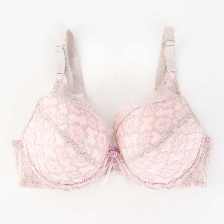 Сіро-рожевий бюстгальтер з мереживом