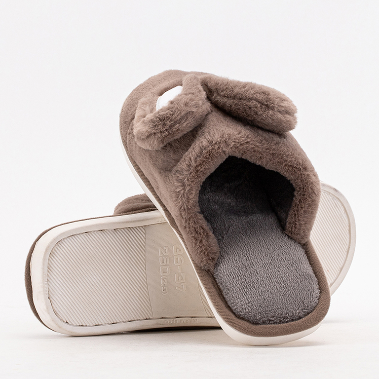 • Красиві жіночі тапочки з м'якого на дотик хутра. Модель на гумовій підошві, прикрашена вушками. Представлене взуття ідеально підійде для зимових моментів, проведених вдома.