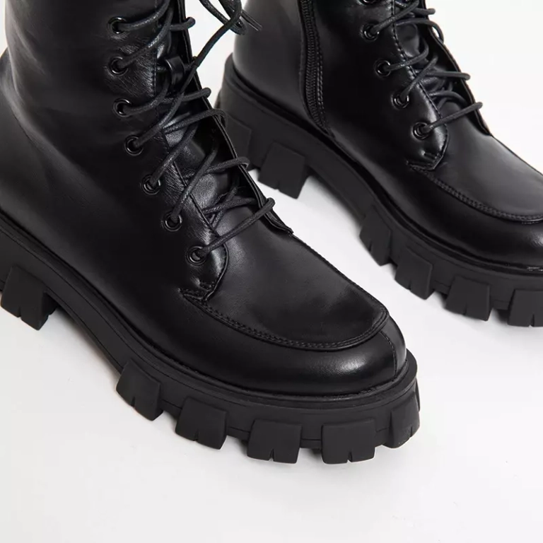 - Класичні жіночі чоботи на плоскому каблуці. Верх виготовлений з екологічної шкіри, внутрішня частина взуття має підкладку у вигляді хутра. Примітка: виріб має сліди клею на матеріалі.