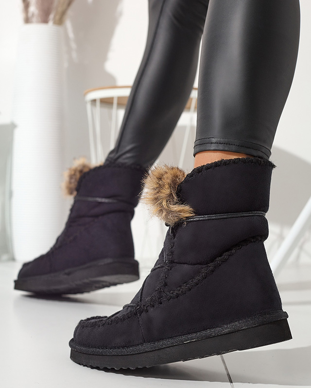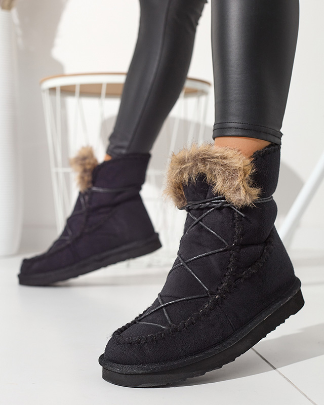- Чудові жіночі зимові черевики з еко-замші. Модель без застібок, утеплена густим хутром.