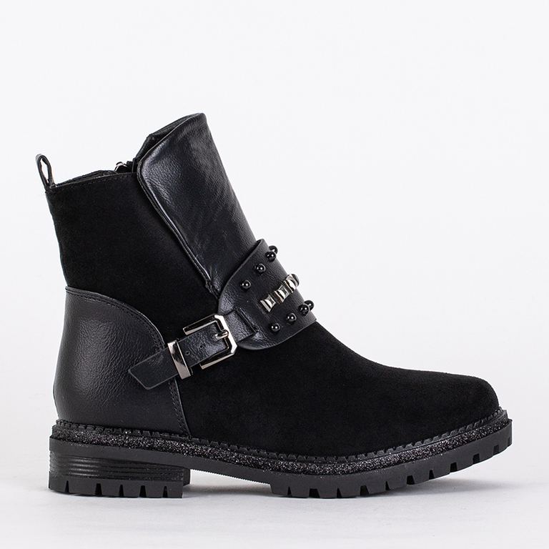 - Стильні черевики для дівчинки, виготовлені з комбінації еко-шкіри та еко-замші. Всередині утеплення густим штучним хутром. Модель оздоблена ремінцем з оздобленням. Ідеально підходить для осінньо-зимового сезону!