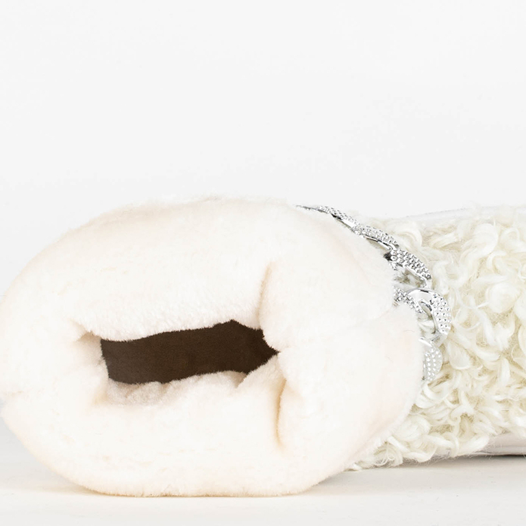 - Оригінальні жіночі чоботи на платформі, прикрашені ланцюжком. Верх виконаний з комбінації еко-шкіри та тканини. Всередині взуття утеплено хутром.