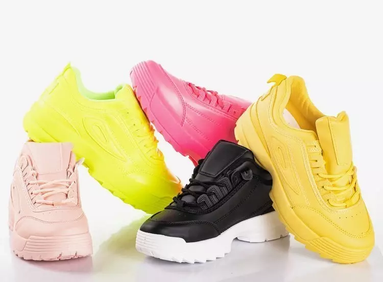 - Наймодніші жіночі спортивні туфлі, татові туфлі / некрасиві туфлі цього сезону. Верх виготовлений з екологічної шкіри неоново-рожевого кольору. ПРИМІТКА: модель може мати плями на підошві. Примітка: виріб має пошкоджений матеріал.