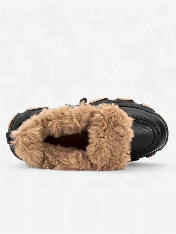 • Неперевершені кросівки на грубій підошві. Модель на шнурівці, виконана з еко-шкіри. Внутрішня частина повністю утеплена хутром. Ідеально підходить до спортивного одягу!