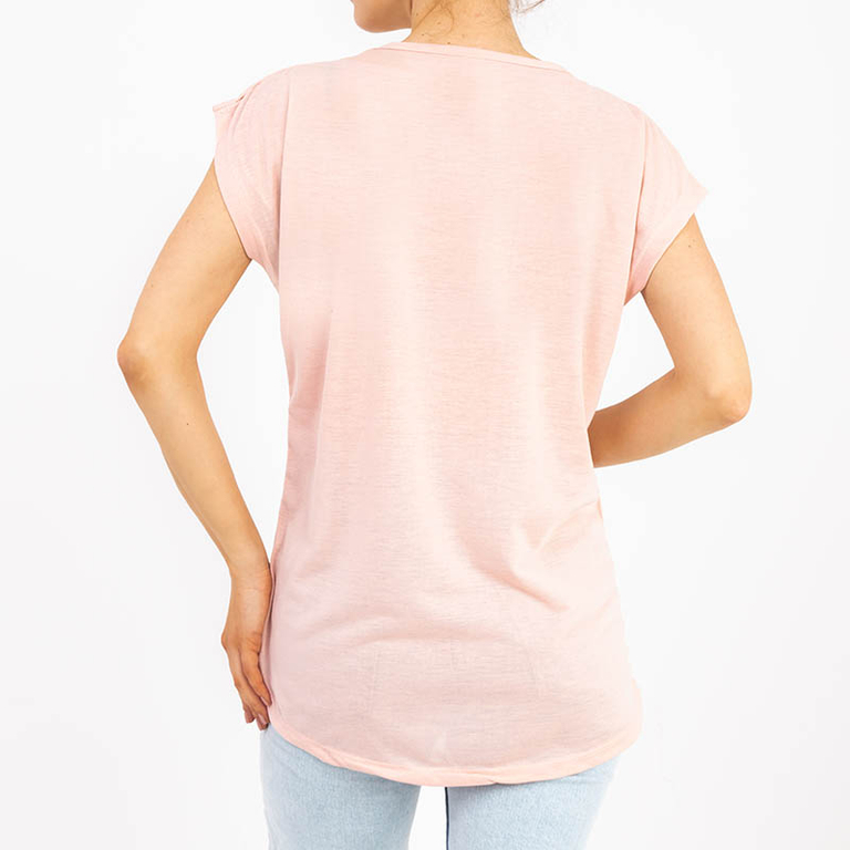 • Суперстильна жіноча футболка з короткими рукавами і круглим вирізом. Передня частина футболки прикрашена золотистим принтом. Ідеальна основа для багатьох повсякденних образів! ПРИМІТКА: Точність вимірювання (+/-) 1 см.
